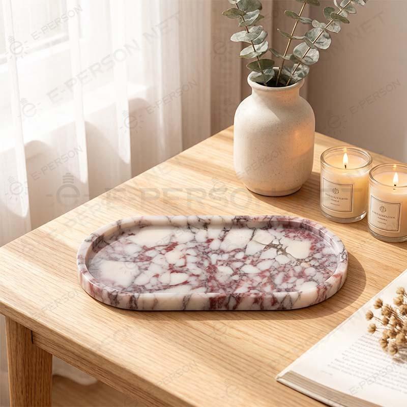 Product description:This elegant natural marble tray features a smooth oval shape and beautiful natural stone veining. Each tray is crafted from genuine marble, making every piece unique with its own natural texture and