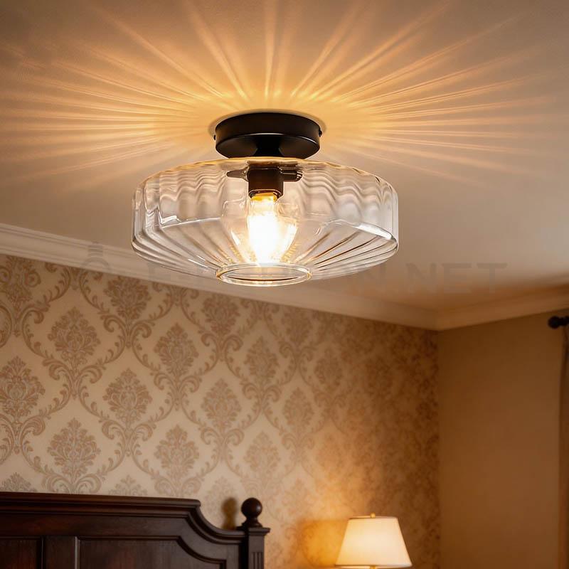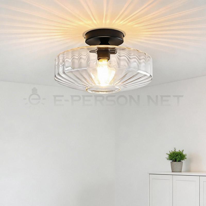 This ribbed clear glass ceiling light combines vintage charm with modern simplicity. The transparent textured glass shade enhances light diffusion and creates elegant reflections on the ceiling. Designed for flush mounting, it is ideal for bedrooms, hallways, kitchens and entryways. Compatible with E27 bulbs, this fixture provides warm and inviting illumination while maintaining a clean and timeless appearance.