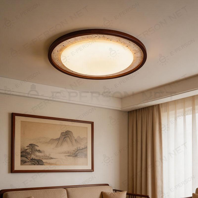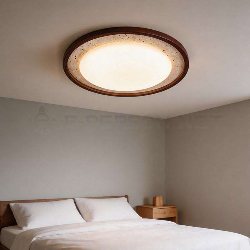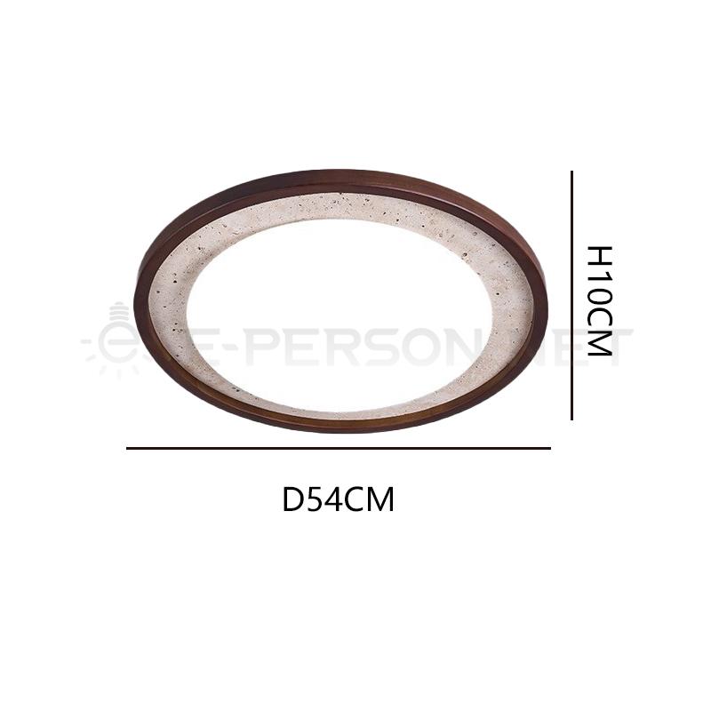 Combining a wooden outer ring with a stone-textured inner layer, this ceiling light blends warmth and modern simplicity. The integrated LED provides soft ambient lighting suitable for residential and hospitality applications.
