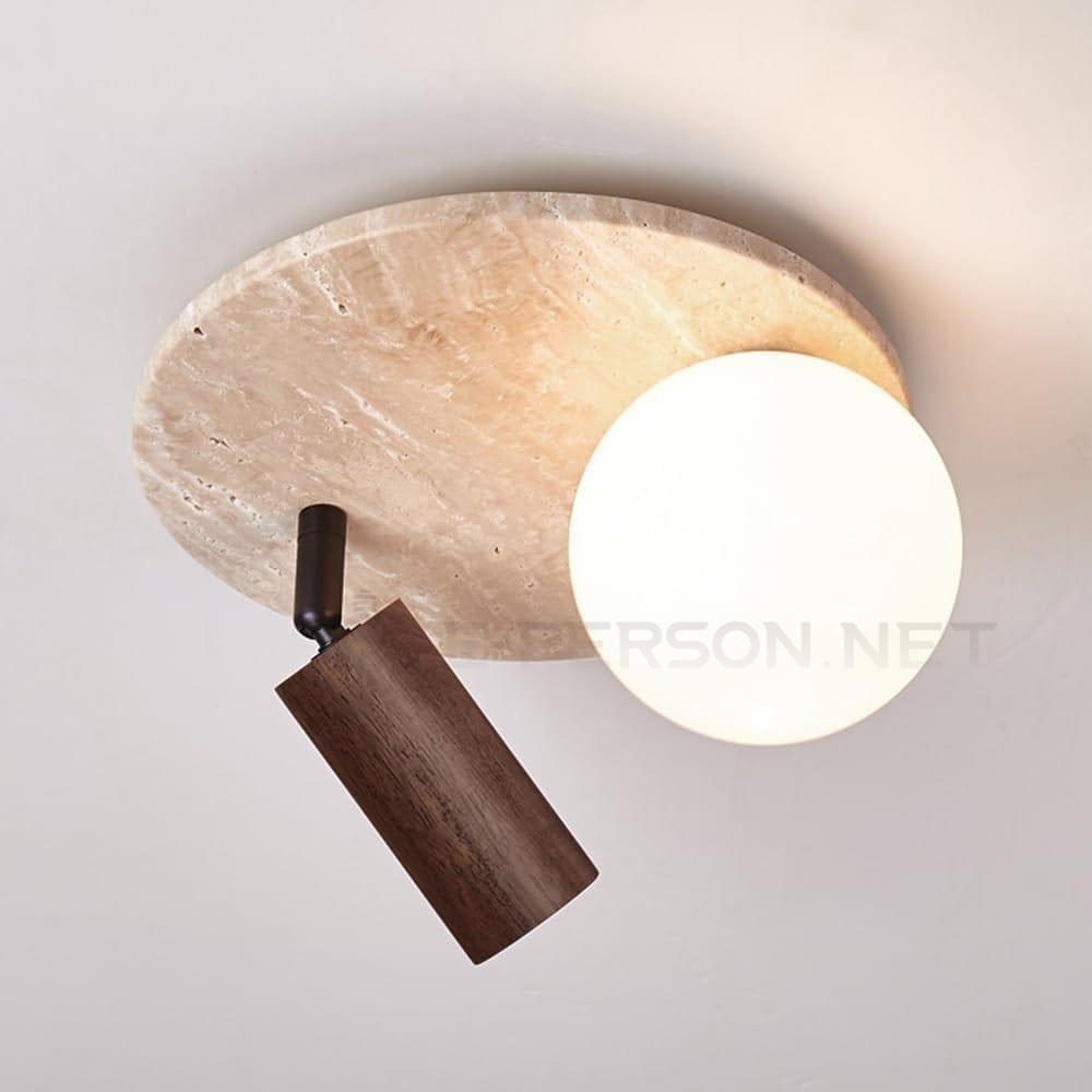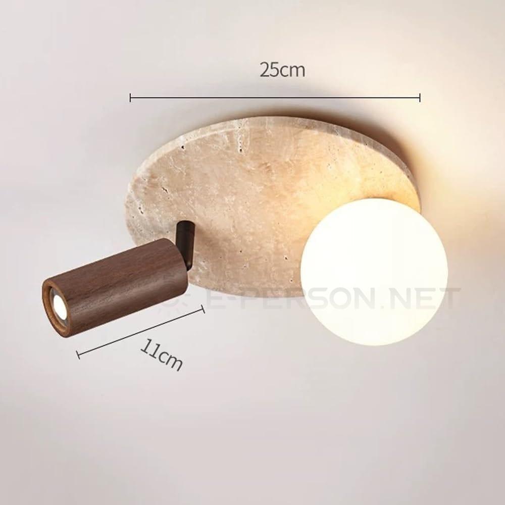 This Wabi-Sabi inspired dual-function lamp combines soft ambient lighting with directional spotlighting in one cohesive design. Featuring an organic oval stone-textured base, a frosted globe (E14), and an adjustable wooden spotlight, it serves perfectly as a ceiling or wall-mounted light for multifunctional living spaces.