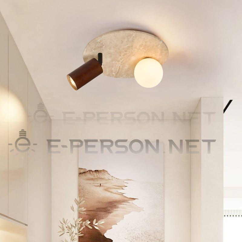 Dual Light Ceiling/Wall Lamp | Wabi-Sabi E14 Globe & Adjustable Spotlight | Stone Texture Minimalist Lighting Fixture