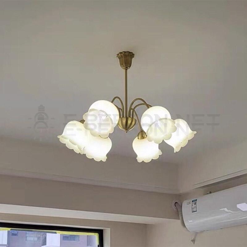 Light Luxury Cream Flower Copper Chandelier Ceiling Hanging Lamp Living Room Bedroom Retro Pendant Lights LED Warm White