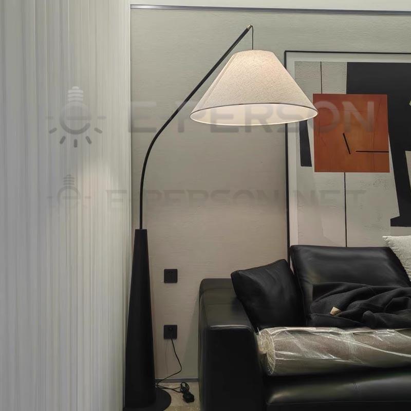 Modern Arc Floor Lamp with Cone Base Minimalist LED Hanging Shade Standing Light for Living Room & Office