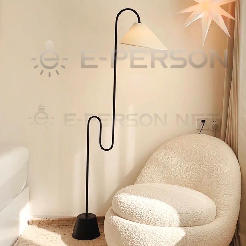 Introduce a bold sense of style to your interior with this Sculptural Curved Floor Lamp, a modern lighting fixture that merges artistic flow with functional design. Its black powder-coated frame flows in a distinctive S-curve, guiding the eye up to the white fabric cone lampshade, which emits a soft, warm glow perfect for reading, ambiance, or accent lighting.