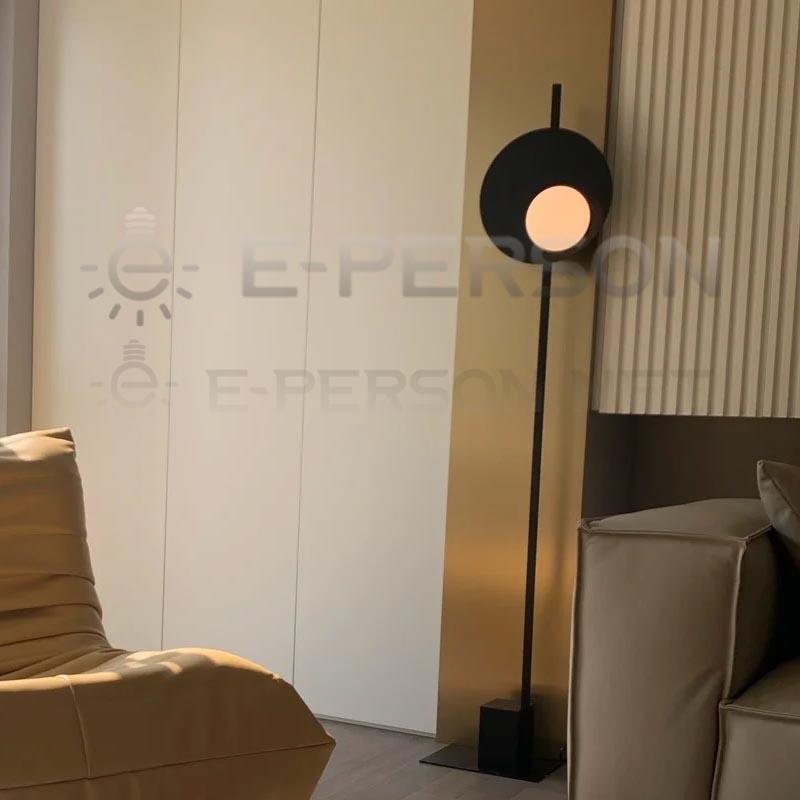 Minimalist Black Floor Lamp with Circular Shade | Modern LED Iron Standing Lamp for Bedroom & Gallery