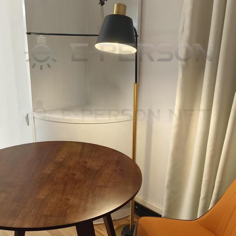 Upgrade your interior with this modern industrial-style floor lamp, blending retro elegance with functional design. The cone-shaped black lampshade directs focused light, while the brass-finished pole and weighted base ensure stability and style. The adjustable arm allows easy repositioning—ideal for reading, working, or accent lighting.