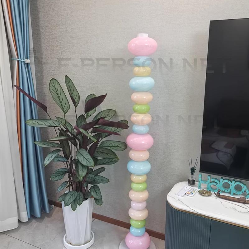 The Colorful Glass Floor Lamp is a vibrant statement lighting piece that transforms any interior into a stylish and artistic space. Designed with stacked pebble-shaped glass shades in soft pastel tones of pink, blue, yellow, and green, it creates a playful yet elegant visual effect. The light diffuses gently through the handcrafted colored glass, producing a warm and inviting glow. Supported by a sturdy base, this floor lamp is perfect for living rooms, bedrooms, hotel lobbies, art galleries, and modern creative spaces. More than just a lamp, it is a decorative art sculpture that adds charm and personality to any environment.