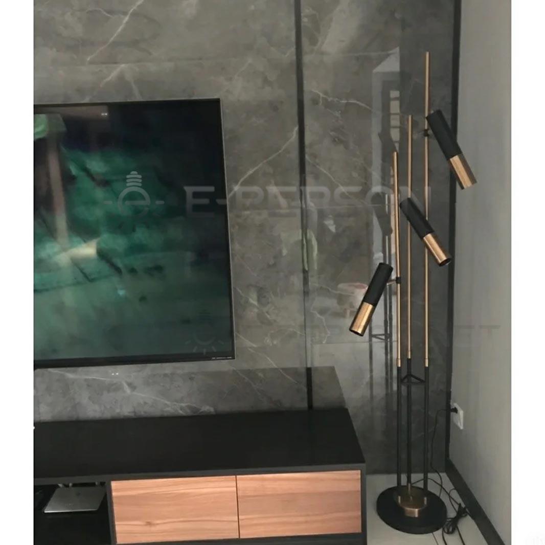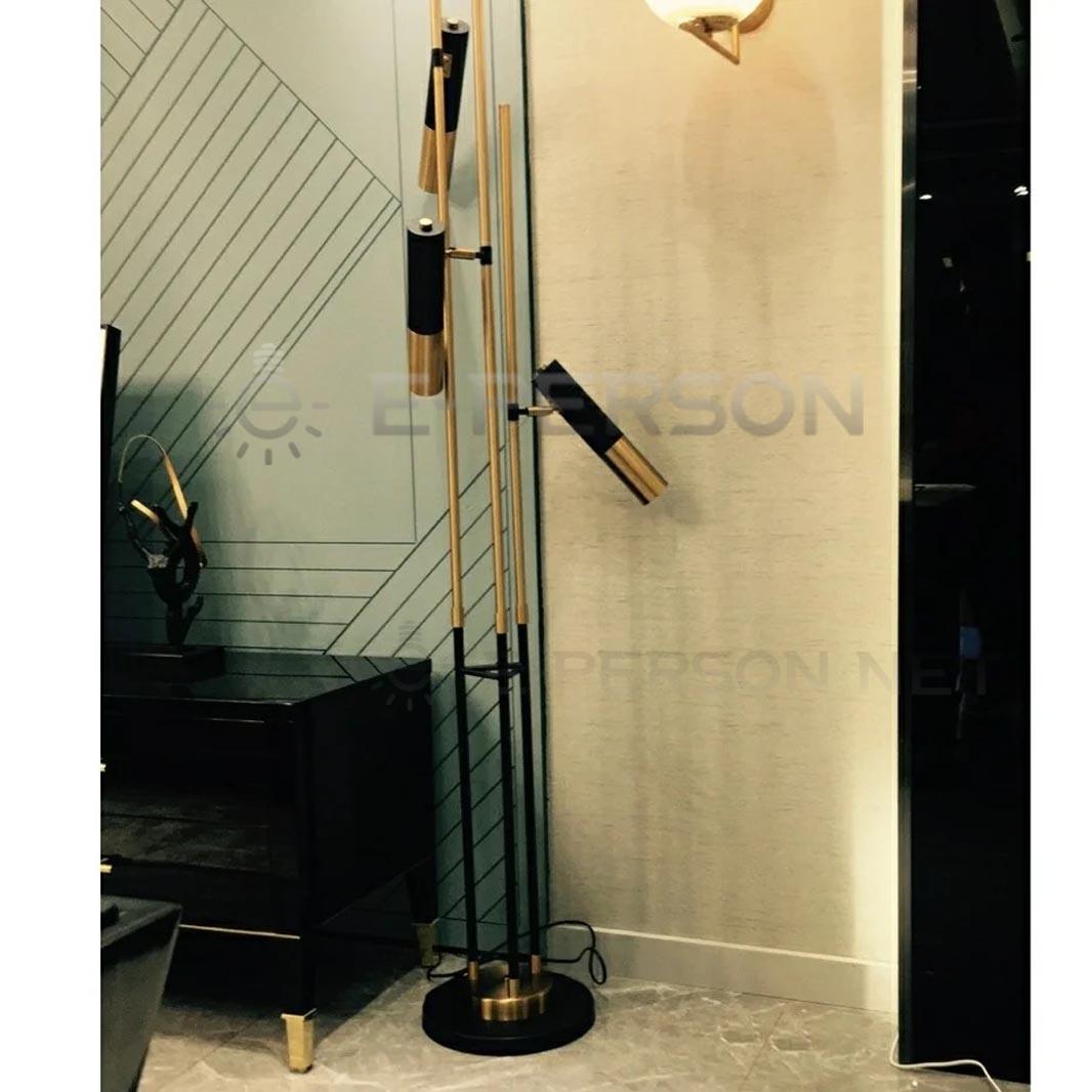 Luxury Multi-Head Floor Lamp with Gold Finish Modern Black & Gold Standing Lamp for Living Room