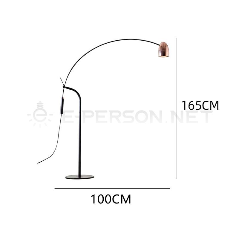 Enhance your space with this modern arched floor lamp featuring a minimalist metal frame and a polished copper head. Its extended curved arm allows wide light coverage, perfect for reading, lounging, or creating ambient lighting in living rooms, studios, or modern offices.