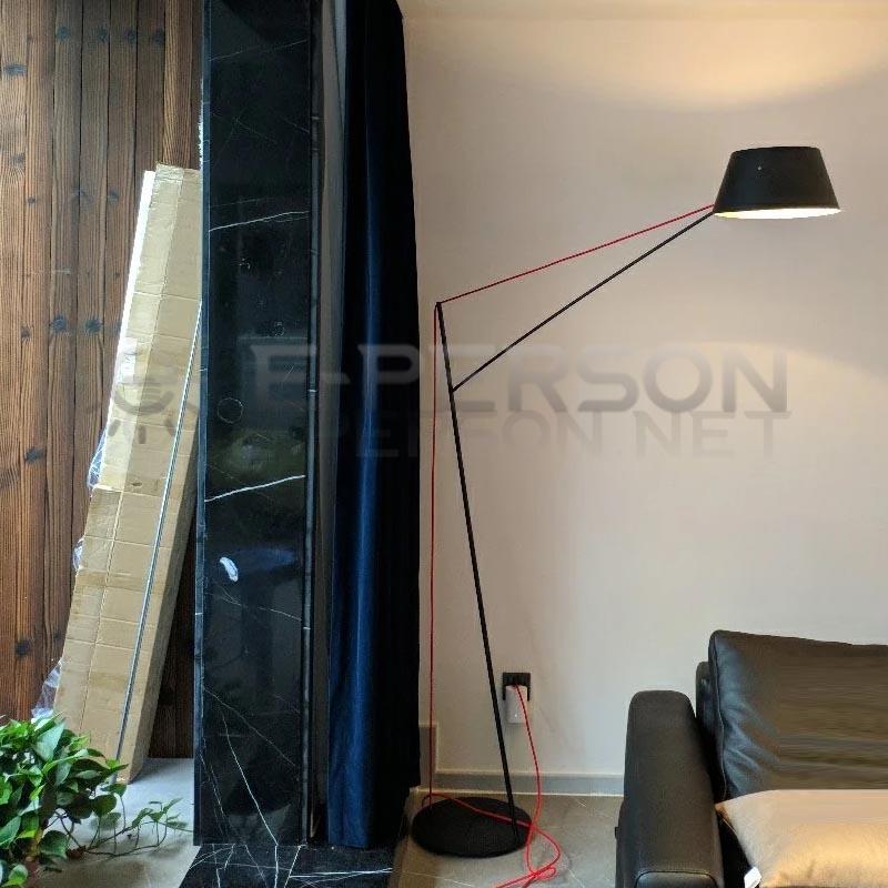 Minimalist Geometric Floor Lamp with Red Cable Adjustable Black Iron LED Standing Light