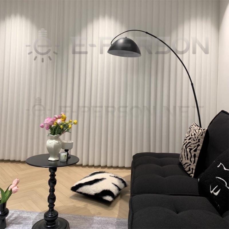 Modern Arc Floor Lamp with Dome Shade Minimalist Black Standing Light for Sofa & Living Room