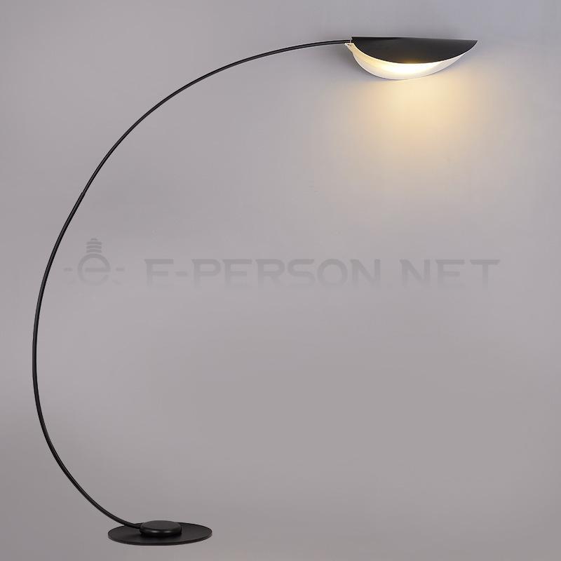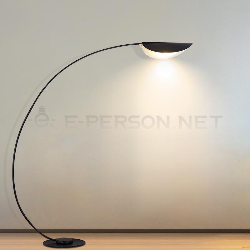 Minimalist Arc Floor Lamp with Black Dome Shade Modern Curved Standing Light