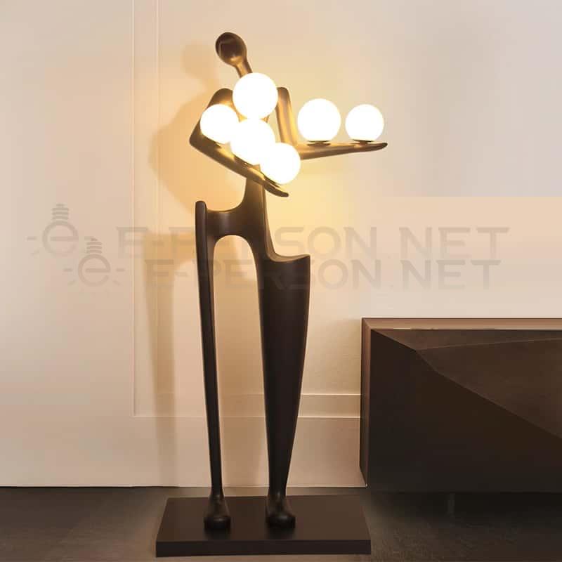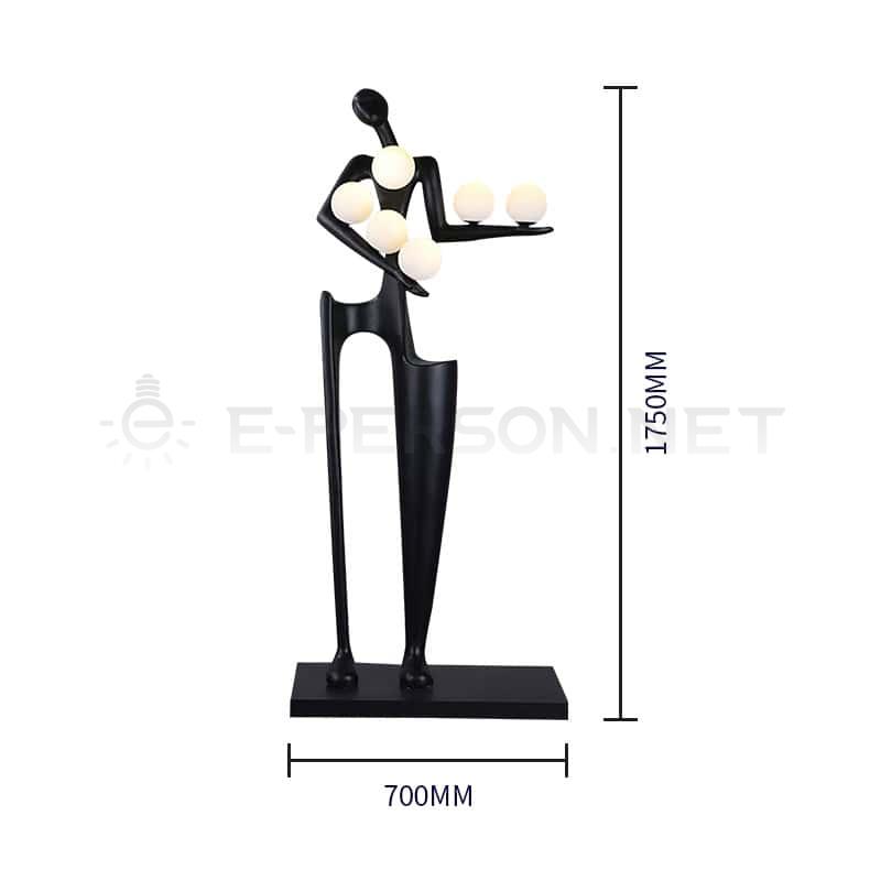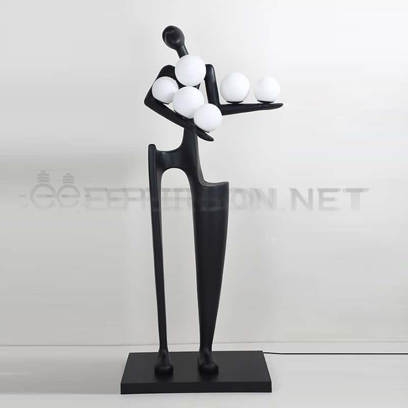 This modern artistic floor lamp features a striking human-figure sculpture design holding multiple glowing spherical LED bulbs, creating a visually stunning and highly decorative lighting piece. Crafted with a smooth, sculptural silhouette and a stable base, it blends artistic expression with functional illumination. The warm LED globes provide soft ambient lighting, making this lamp perfect for luxury living rooms, hotel lobbies, galleries, villa halls, and upscale commercial interiors. Its creative figurine form adds character and a unique statement to any space, appealing to buyers seeking distinctive designer lighting with strong visual impact.