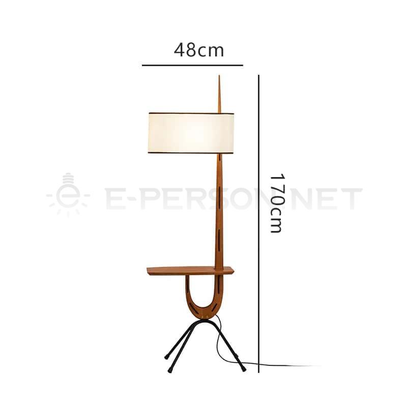 This multi-functional floor lamp features a unique combination of lighting and shelving, built with a U-shaped walnut wood body, a square fabric lampshade, and a stable black tripod metal base. The integrated side table shelf offers extra practicality for placing books, drinks, or decorative items, making it perfect for living rooms, lounges, or hotel guest spaces.