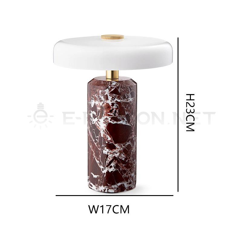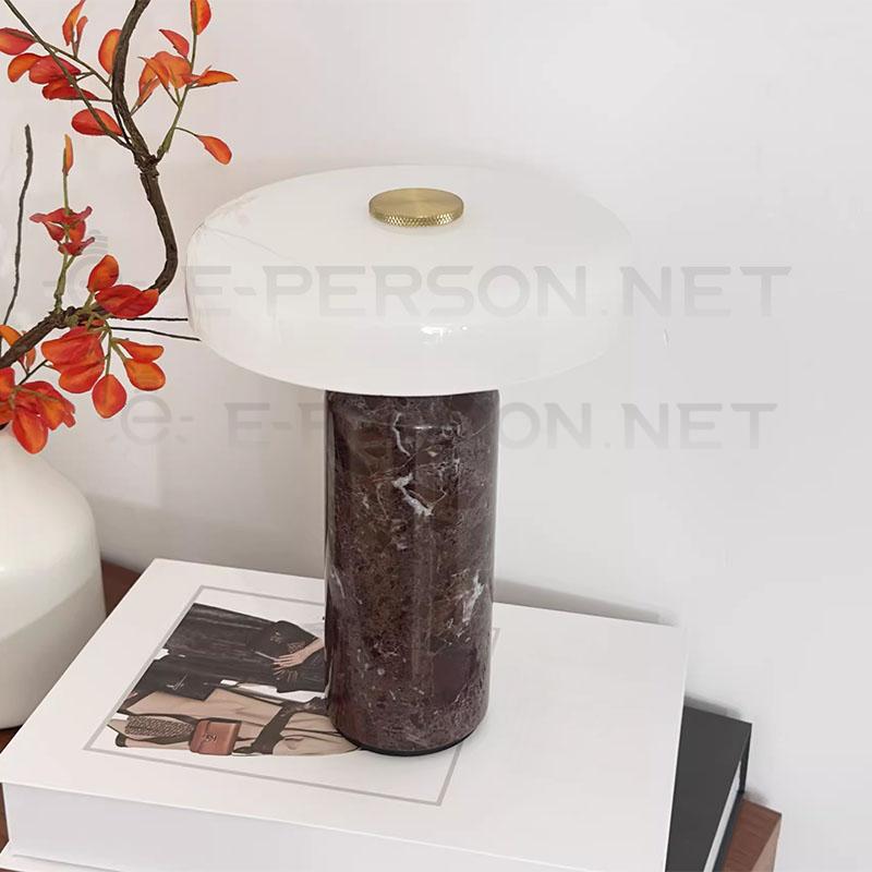 This modern bedside table lamp features a marble pattern base and a simple round lampshade, creating a clean and elegant look.