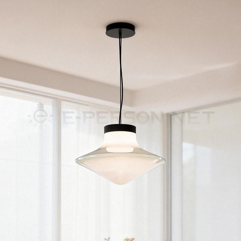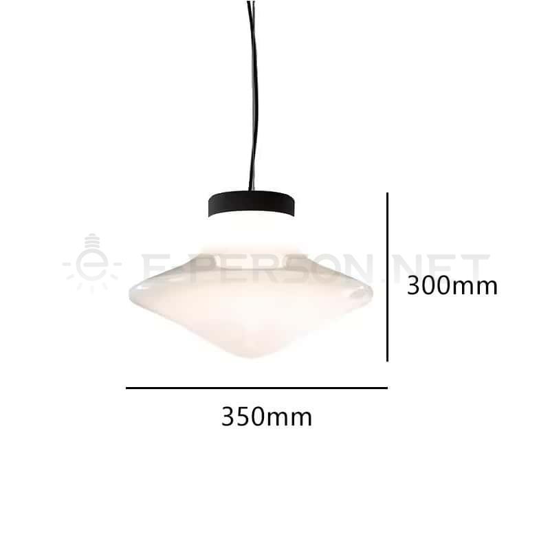 This elegant pendant lamp features a frosted white glass shade, creating soft and even illumination. The metal top cap and ceiling canopy come in a sleek black finish, perfectly complementing the glass diffuser. Ideal for dining rooms, living spaces, cafés, or hotel areas, it provides a stylish ambient glow. Its minimalist yet sculptural form fits seamlessly into modern, Scandinavian, or contemporary interiors.