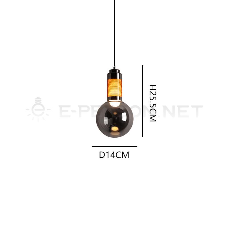 This modern glass pendant light features a smoked glass globe shade combined with metal components and industrial-style details, creating a stylish and vintage-inspired lighting solution.