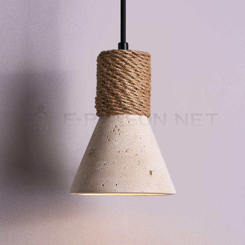 This cone pendant combines natural travertine stone with rope detail, blending rustic texture with modern simplicity. The warm light effect makes it suitable for dining tables, cafes and Mediterranean style interiors. Each piece maintains unique stone character.