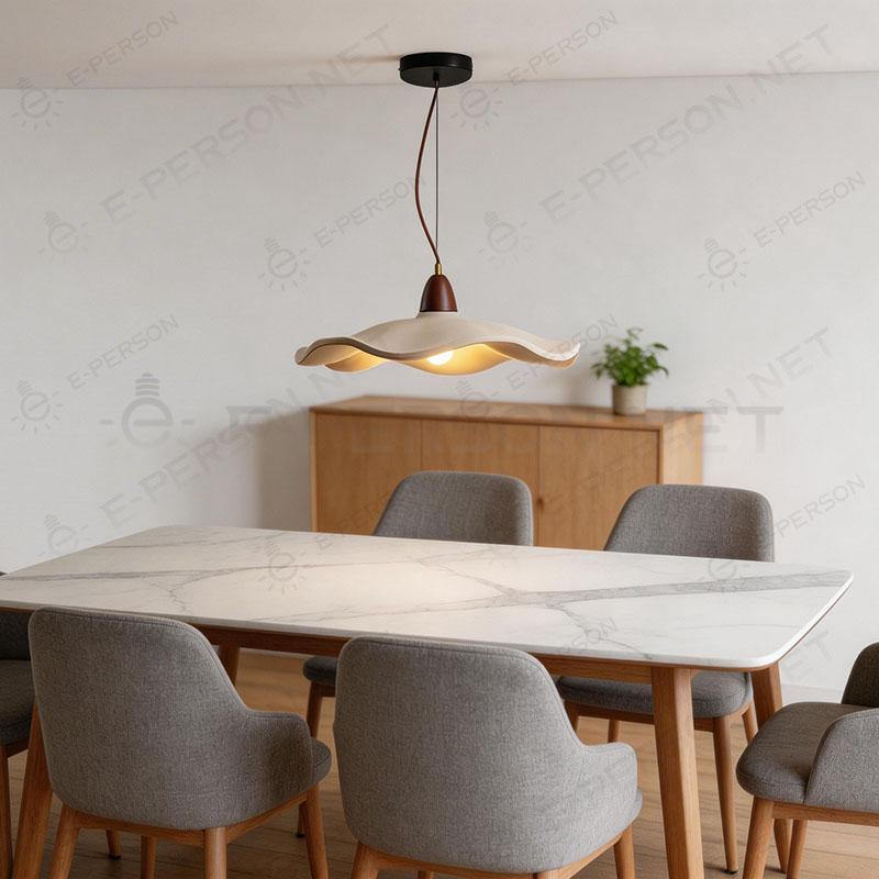 Inspired by natural wave forms, this sculptural pendant light offers a soft and flowing silhouette. The curved structure diffuses light evenly, creating a warm and relaxing ambience for dining areas and creative interiors.
