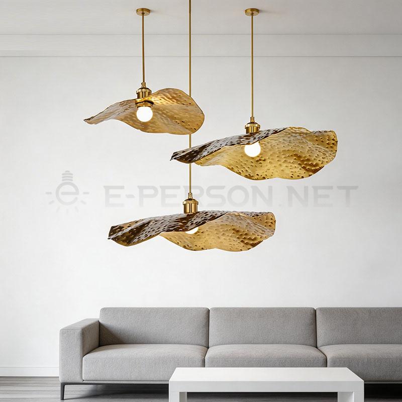 Modern Irregular Wave Brass Pendant Light Gold Luxury Hanging Lamp 30cm 40cm 50cm