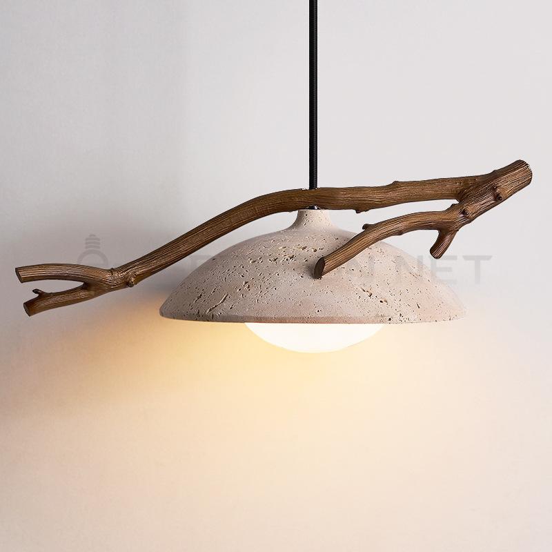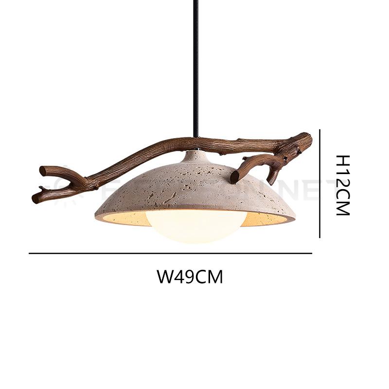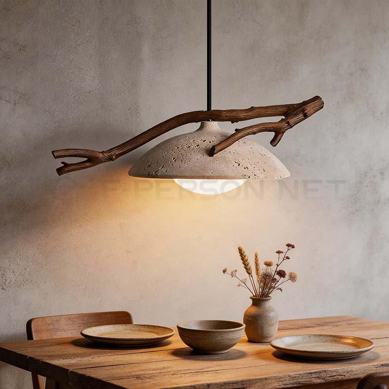 This pendant light combines a textured stone dome shade with a realistic wooden branch detail, creating a strong natural and organic visual statement. The soft warm light diffuses gently beneath the semi-spherical stone structure, making it ideal for dining rooms, boutique hotels, cafés, and artistic interiors. Inspired by Wabi-Sabi aesthetics, it balances raw texture and sculptural form, offering both functional illumination and decorative impact.