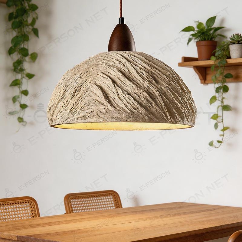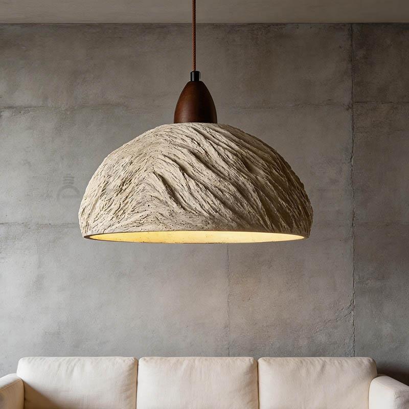 This Featuring a carved flowing surface texture, this dome pendant lamp highlights sculptural craftsmanship and natural inspiration. The layered stone-like texture enhances depth while delivering warm ambient illumination. Perfect for modern Nordic interiors, restaurants, hospitality projects, and residential spaces seeking soft architectural lighting.