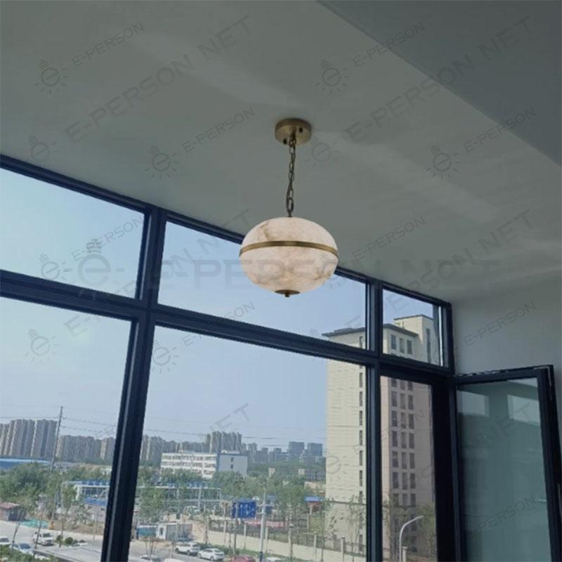 Luxury Alabaster Sphere Pendant Light Brass Ring Decorative Lamp