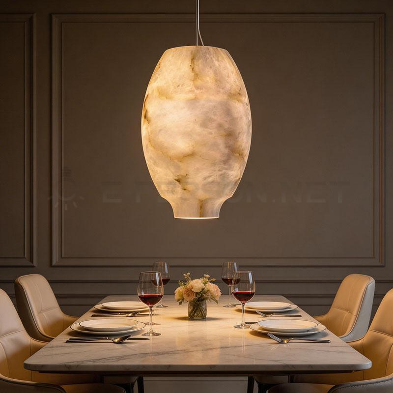 Natural Alabaster Pendant Light Handmade Stone Hanging Lamp for Modern Interiors