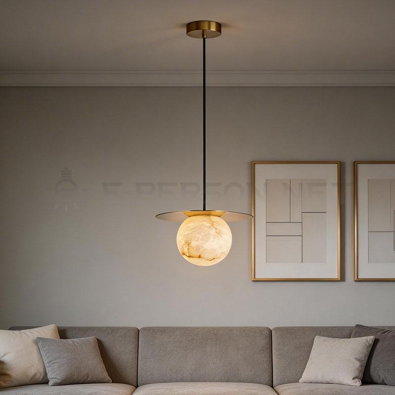 This compact alabaster pendant lamp is designed for subtle yet elegant lighting.