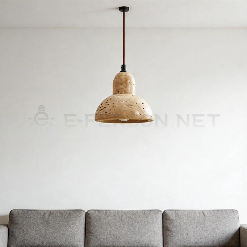 This dome-shaped travertine pendant light highlights the natural stone texture with a clean and minimalist silhouette. The soft diffused light enhances interior warmth while maintaining a refined modern aesthetic.