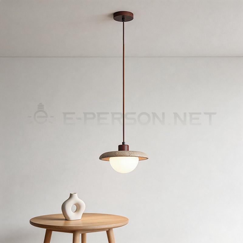This This pendant light features a unique UFO-inspired design combining natural stone and a glowing glass globe. The layered structure creates soft diffused lighting with a strong visual identity.