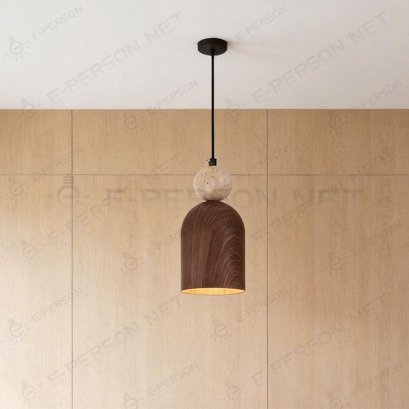 This pendant light combines natural travertine stone with a warm wooden element, creating a harmonious balance of textures. The soft downward lighting enhances a cozy and relaxing atmosphere.Perfect for bedside lighting, bedrooms, and modern interiors inspired by natural aesthetics.