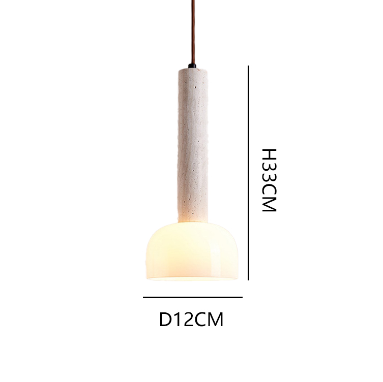 Modern Travertine Pendant Light Cylinder Stone Hanging Lamp Glass Shade Lighting