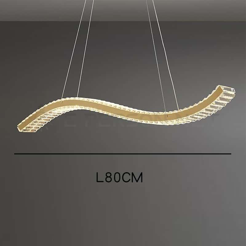 Modern Luxury Curved Crystal LED Pendant Light, Gold Wave Shape Chandelier for Dining Room & Living Room