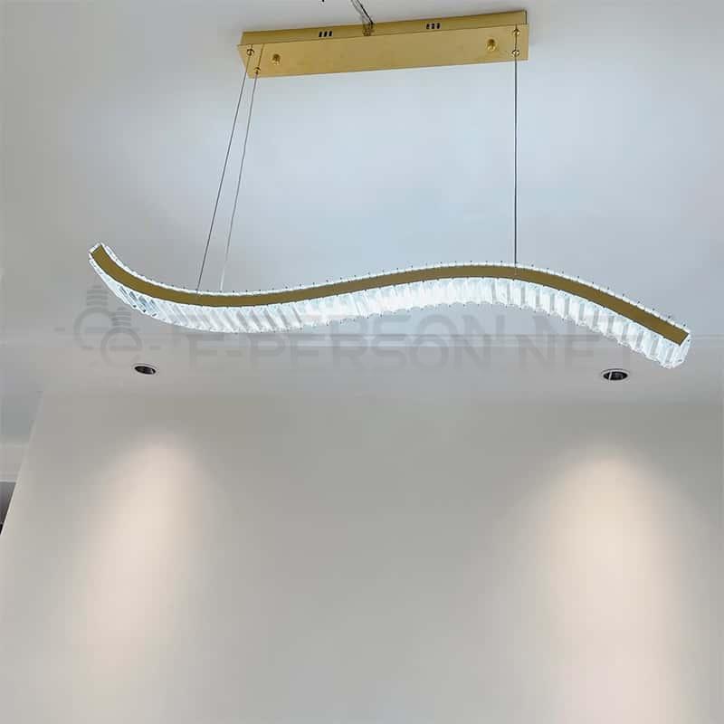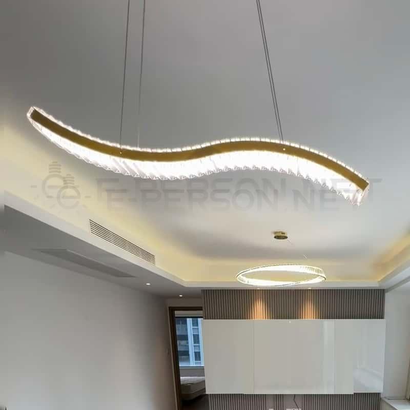 This modern luxury crystal LED pendant light features a distinctive golden wave-shaped frame combined with precision-cut crystal pieces, delivering brilliant light reflection and a premium decorative effect. The elegant S-curve design brings a sense of movement and sophistication, making it ideal for dining rooms, living rooms, villas, hotels, and high-end commercial spaces. Equipped with energy-efficient integrated LED chips and adjustable suspension cables, it ensures both visual comfort and installation flexibility. A perfect choice for buyers seeking upscale, modern, and uniquely designed lighting fixtures.