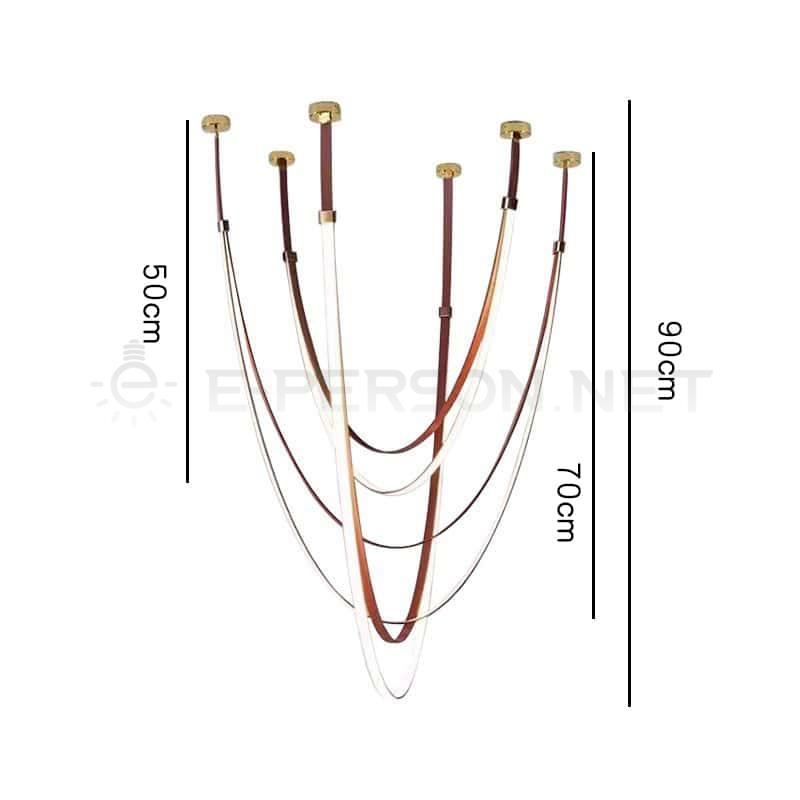 This multi-point pendant light features a flexible, soft-curved hanging structure that forms an elegant draped silhouette, creating a striking focal point in luxury interiors. The lamp body is wrapped with refined leather or fabric-texture material, paired with multiple brass-finished ceiling mounts for a visually balanced and customizable installation. Its artistic flowing lines offer gentle, ambient illumination suitable for living rooms, hotel lobbies, villas, showrooms, and high-end commercial spaces. With adjustable suspension heights and premium materials, this pendant light provides a modern sculptural aesthetic that elevates any contemporary decor.