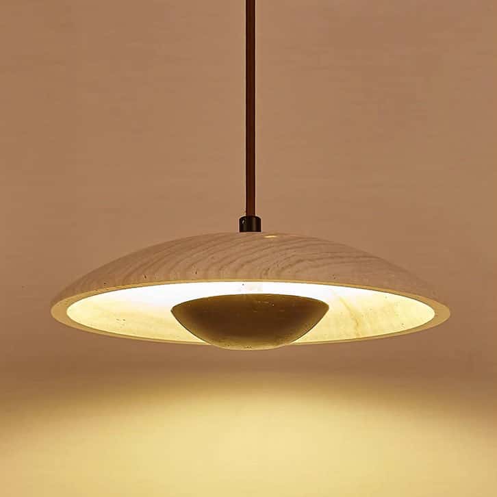 Modern Stone Pendant Light | Natural Wood & Stone Hanging Lamp for Dining Room & Living Room