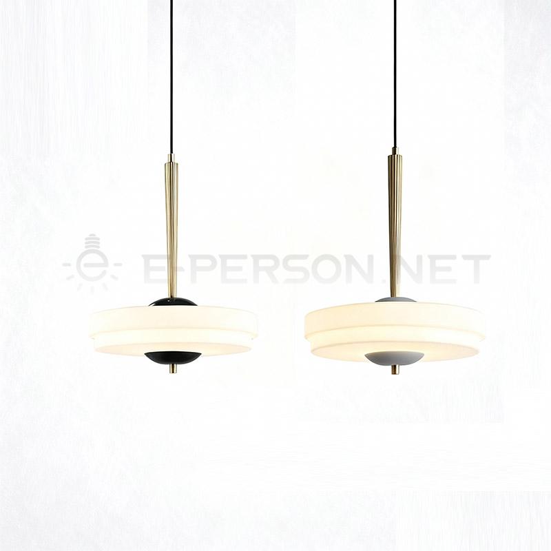 This pendant lamp combines modern elegance with artistic design, featuring a frosted glass shade in a unique layered disc shape. The geometric structure creates a refined balance between simplicity and sophistication, making it an eye-catching statement in any interior.