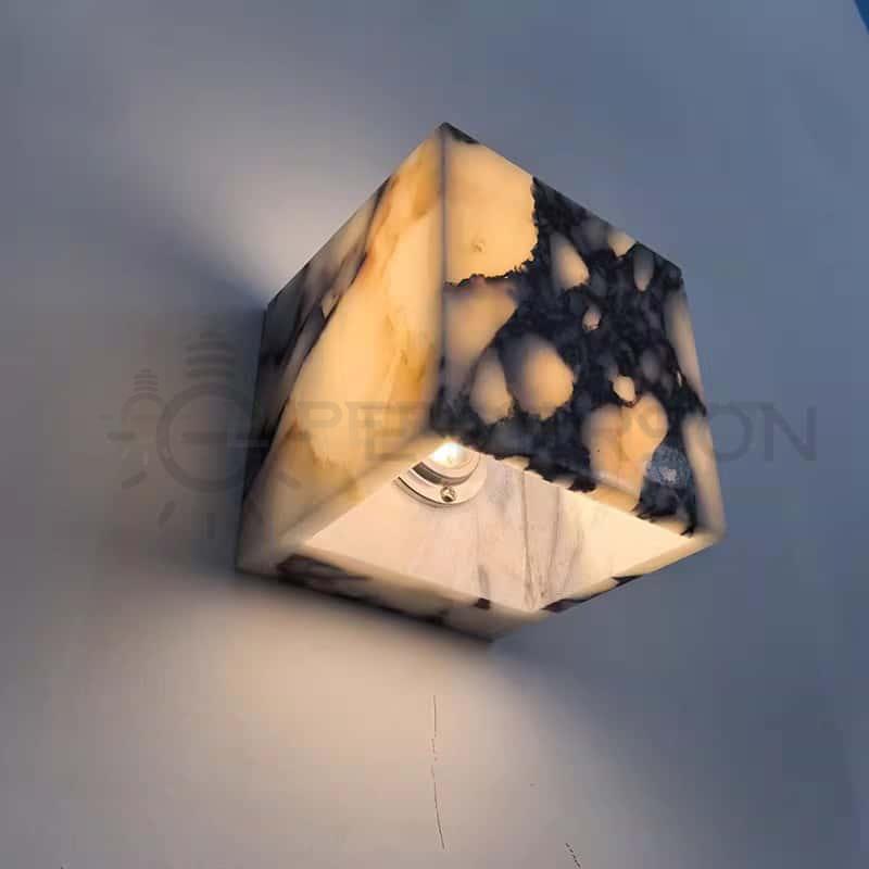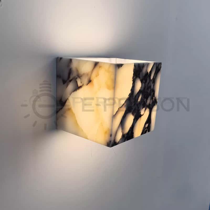 This square marble wall lamp combines natural stone texture with warm LED illumination, creating an elegant and soothing lighting effect. The minimalist cubic form and soft light make it perfect for bedrooms, living rooms, corridors, or hotel interiors. Each lamp is carved from natural marble, making every piece unique in pattern and tone. It’s not only a light source but also an exquisite piece of wall art that enhances any modern space.