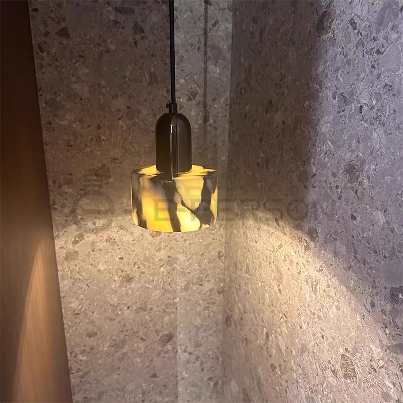 This minimalist pendant lamp combines a natural marble lampshade with a sleek metal structure, delivering both luxury and elegance. The warm LED glow softly penetrates the marble, creating a cozy and refined ambiance ideal for dining areas, kitchen islands, or bedrooms. The adjustable cord offers flexible installation heights for single or grouped arrangements. Each piece of marble features natural veining, ensuring every lamp is one-of-a-kind.
