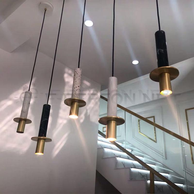 This minimalist pendant light combines natural marble with brushed brass to create a timeless piece of modern luxury. The cylindrical design highlights the raw texture and veins of the stone, available in white, black, green, and terrazzo finishes. Ideal for kitchen islands, dining rooms, bars, or boutique hotels, it delivers focused illumination with an elegant sculptural form.