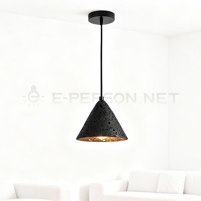 Modern Lava Stone Pendant Light Black Cone Hanging Lamp for Dining Room Kitchen Hotel