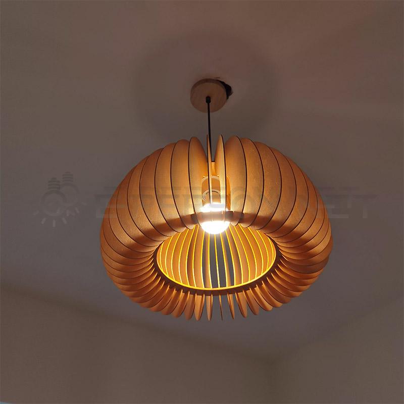 This pendant light is designed for indoor lighting applications, featuring a wooden lampshade with a layered structure that allows light to pass through evenly.It provides warm and comfortable illumination suitable for daily lighting and decorative use.