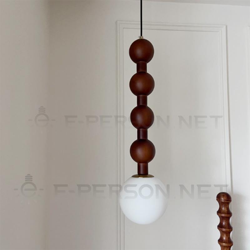 This pendant light is designed for indoor lighting applications, featuring a glass globe shade combined with decorative wood bead elements and metal fittings.