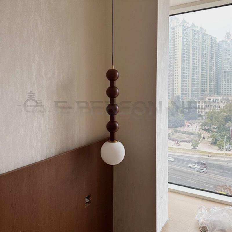 Pendant Light | Modern Hanging Light with Wood Beads Glass Globe for Bedroom Hotel Indoor Lighting