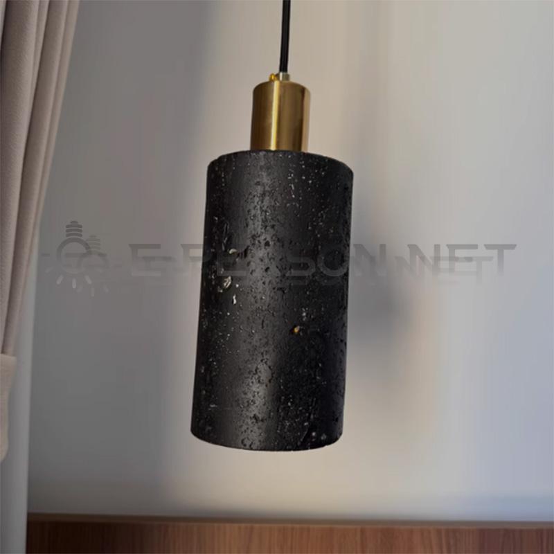 This pendant light is designed for indoor lighting applications, featuring a stone-style cylindrical shade combined with a metal suspension structure.
