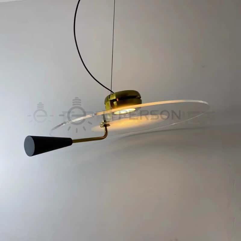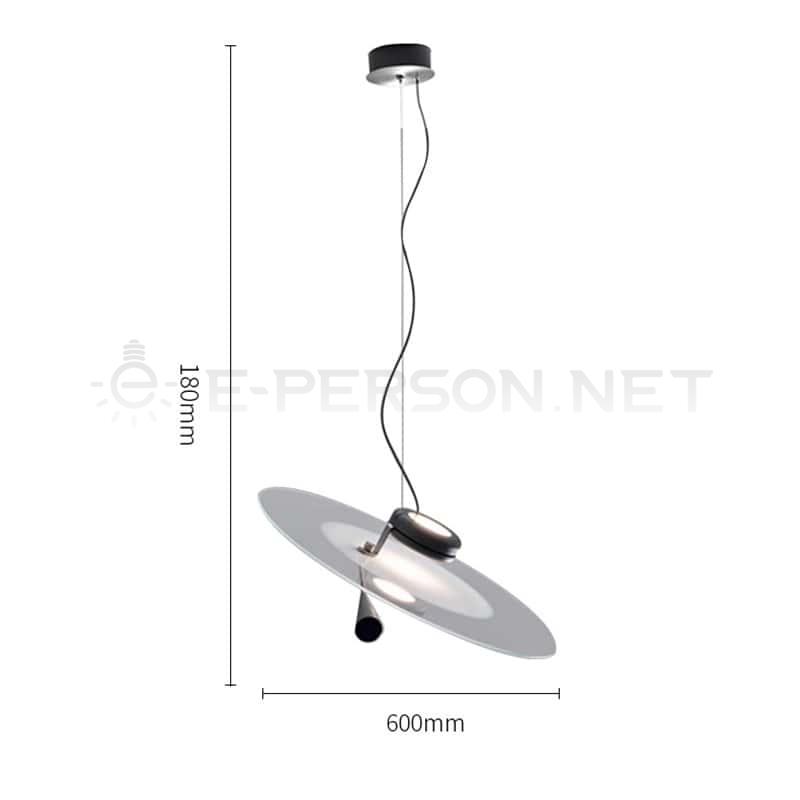 This modern pendant light combines acrylic, aluminum, and iron to create a futuristic floating disc designThe wide acrylic diffuser softens the LED light for a comfortable and even glow, while the metal structure ensures durability and stability.Its minimalist form adds a touch of elegance to living rooms, dining spaces, offices, or showrooms.With an adjustable suspension system, the height can be tailored to different interior settings — perfect for both residential and commercial use.