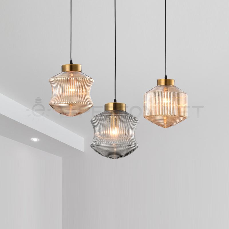 This modern ribbed glass pendant light features a unique wave-shaped glass shade with vertical ribbed texture, available in clear and amber finishes. The golden metal holder adds a touch of luxury, making it suitable for both modern and vintage interiors. Equipped with LED lighting, it provides warm, soft, and energy-efficient illumination. Perfect for dining rooms, living rooms, bedrooms, kitchens, restaurants, cafes, and hotels, this pendant lamp combines decorative style with practical functionality. Made from high-quality ribbed glass and durable hardware, it is an excellent choice for residential and commercial projects.