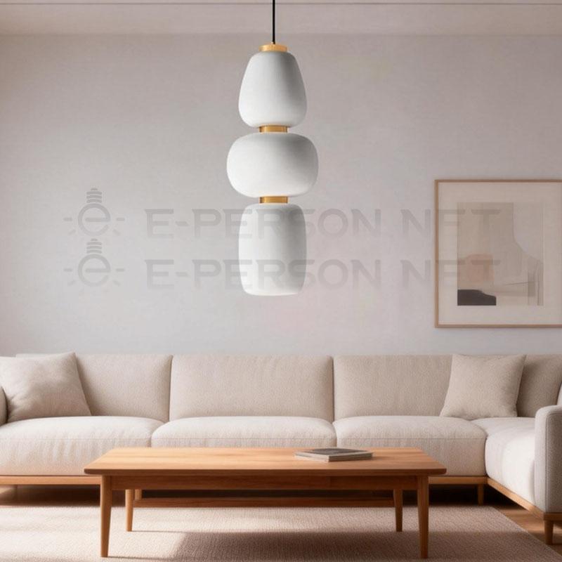 This This pendant light is designed for indoor lighting applications, featuring a stacked white glass shade combined with subtle brass metal details.The glass shade softens the light output, providing comfortable and warm illumination suitable for daily use.
