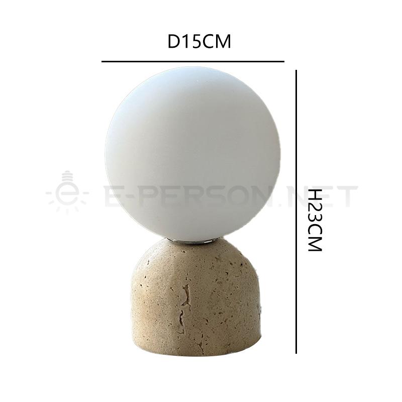 This modern table lamp features a solid Travertine base paired with a smooth opal glass globe, creating a refined balance between raw material texture and minimalist design.